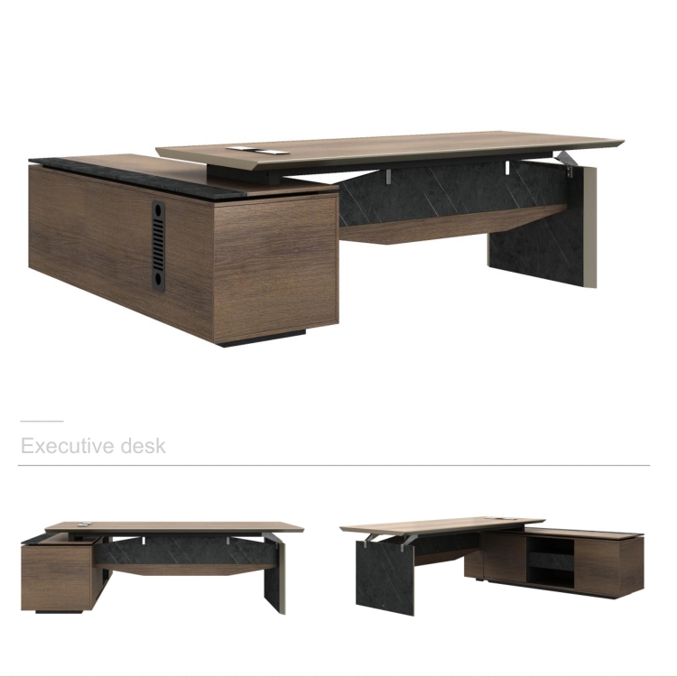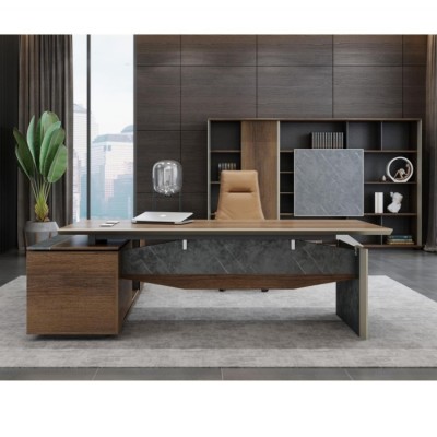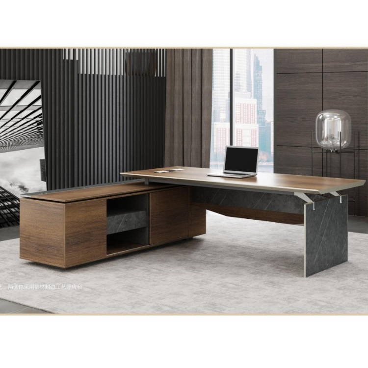 辦公桌老板桌 簡約現(xiàn)代辦公桌椅組合 辦公室家具總裁桌子單人經(jīng)理桌 詳細信息 1、臺面:40MM厚E1環(huán)保MFC板材60°斜邊工藝處理,斜邊采用反鴨嘴鋁材封邊。