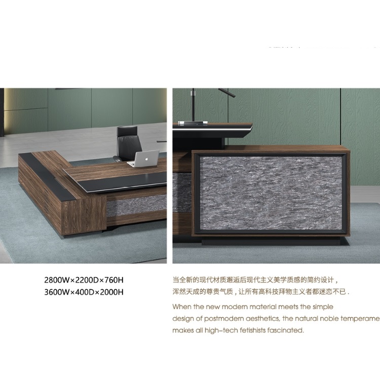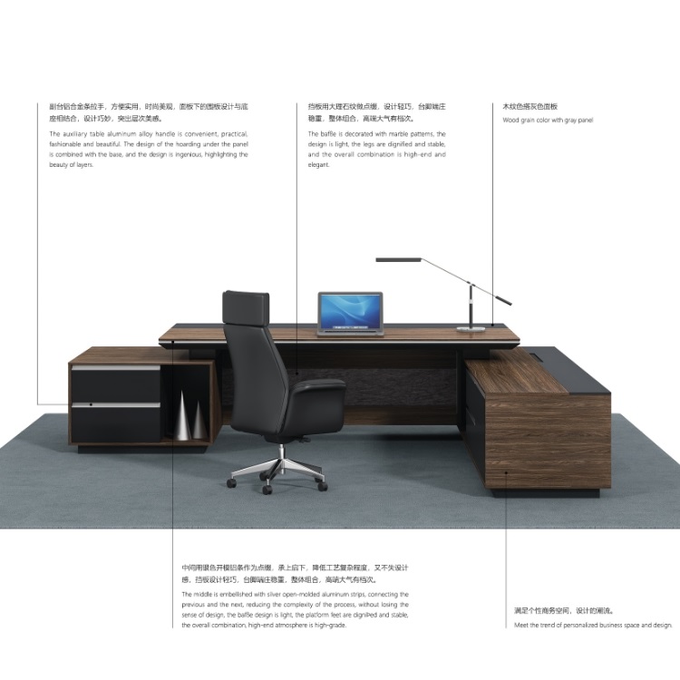 簡約現(xiàn)代老板桌椅組合 總裁桌經(jīng)理主管辦公桌 板式大班臺辦公桌 詳細信息 1、基材:采用定制E1級國家綠色環(huán)保MFC,紋理清晰、自然,色彩亮麗、飽滿,整體真實感強、光澤柔和、手感細膩。