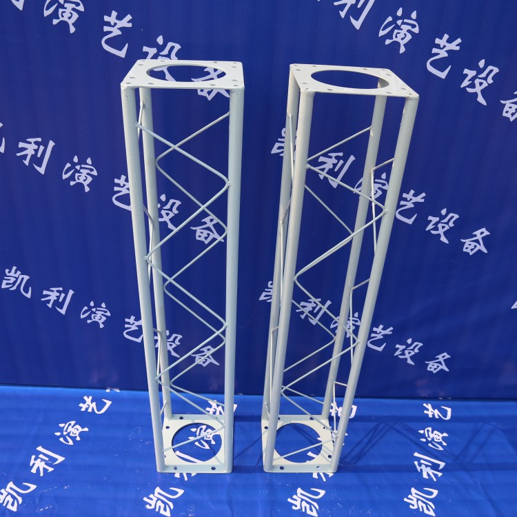 成都固定桁架批發(fā)定制 四川鋁合金舞臺(tái) 成都燈光架廠家 網(wǎng)架 詳細(xì)信息 桁架22mm*1.2mm圓形國標(biāo)鋼管, 6mm冷拉絲,精工保護(hù)焊接,兩邊連接片厚度為4.5mm扁鋼,精品焊接,表面 白色(烤漆)處理。上10個(gè)大*2cm螺絲