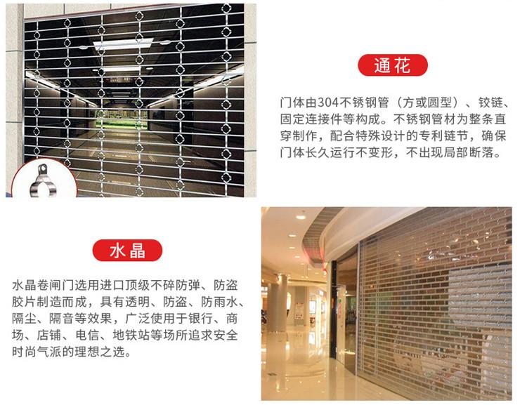 水晶卷簾門是銀行,電信,地鐵站,時(shí)裝專賣店及別墅陽臺等以追求安全,典雅,時(shí)尚氣派場所的理想之選。