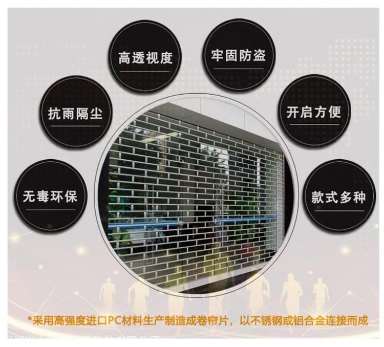 仁壽水晶卷簾門定制 專業(yè)廠家為您服務(wù) 水晶卷簾批發(fā) 詳細(xì)信息 水晶卷簾門,主要用于商場,店面使用。高透明PC板簾片中間穿插不銹鋼管材,或采用鋁合金條穿PC板,整體透光美觀,深受廣大消費(fèi)者喜歡。