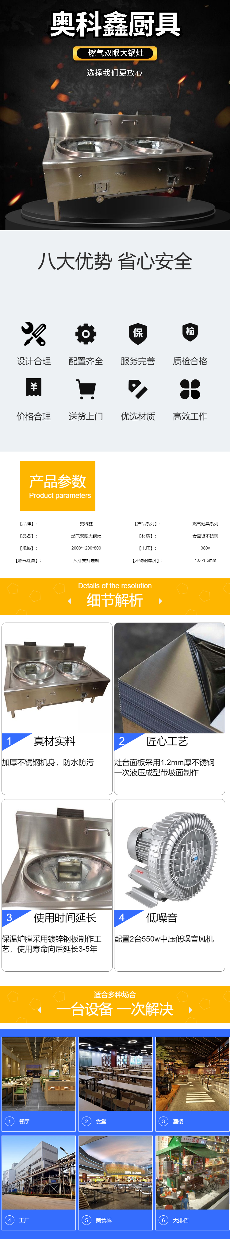 1、整臺灶臺設(shè)計豪華大氣、美觀、結(jié)實、氣勢非凡。