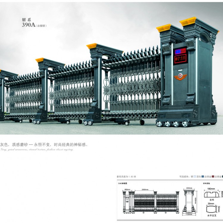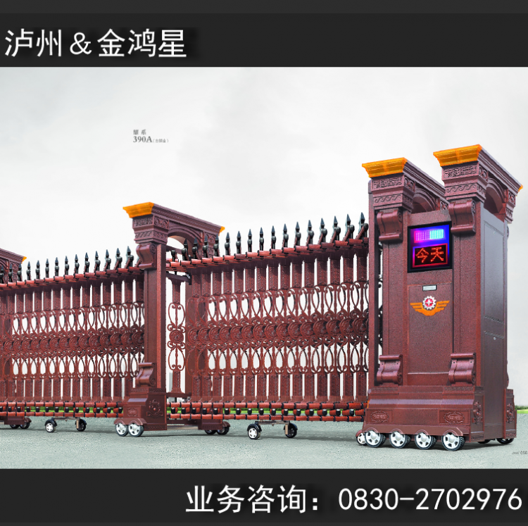 供應復古電動伸縮門,適合仿古建筑電動伸縮門,中式電動伸縮門 別墅電動門  鑄鋁電動伸縮門 瀘州電動伸縮門訂制,適合仿古建筑,別墅、農莊,或原生態(tài)營業(yè)場所,高端大氣,沉穩(wěn),上檔次;行業(yè)品牌廠家重磅投產,公司實力雄厚,設備精良,瀘州惠元門控設備有限公司全體員工秉承“質量為要,顧客至上,銳意進取”的經營理念,服務于多家500強企業(yè)及政府機構,于2009年6月成功開拓東南亞市場,贏得廣大用新老用戶的一致好評, 我們將堅持“品質+服務”的原則,向全國各地廣大客戶提供優(yōu)質的產品和服務!熱誠歡迎各界人士來訪或來電咨詢洽談業(yè)務?。?/span>