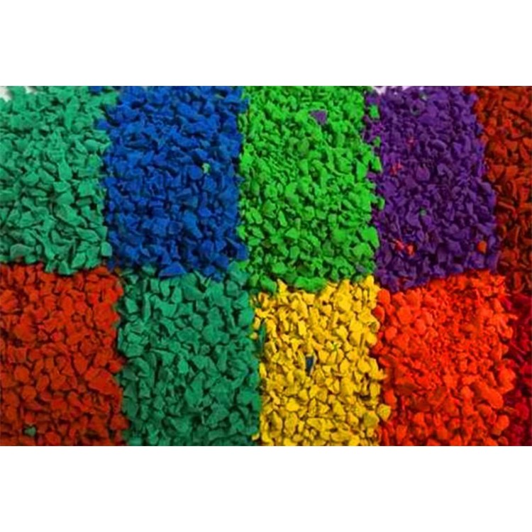 EPDM彩色橡膠顆粒(三元乙丙)橡膠顆粒均勻無粉塵、無雜質(zhì)、比重輕、原料正,抗裂、抗紫外線、耐色變、耐光化,彈性好,顏色豐富柔和,長時間粉化或軟化,保持色彩美觀鮮艷。橡膠顆粒為環(huán)保塑膠顆粒,可使用在幼兒園室外EPDM彩色塑膠地面,它不易脫粒、開裂和起泡。具有顏色柔和和彈性高等點,摻入塑膠