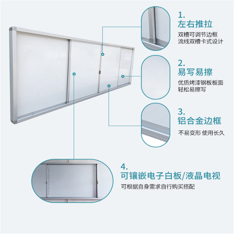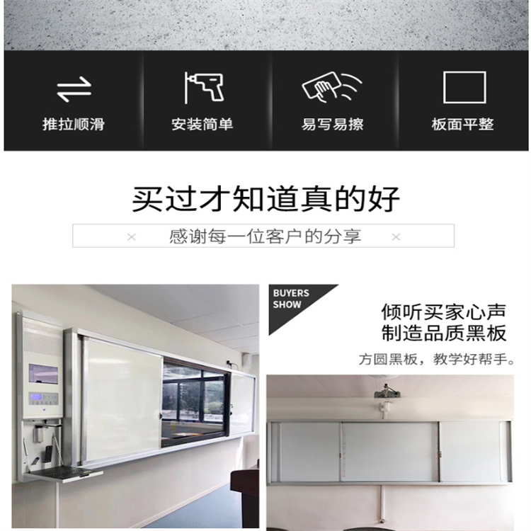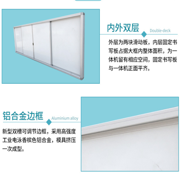 直供學(xué)校教室推拉白板無塵黑板尺寸可自定推拉黑板多媒體教學(xué)