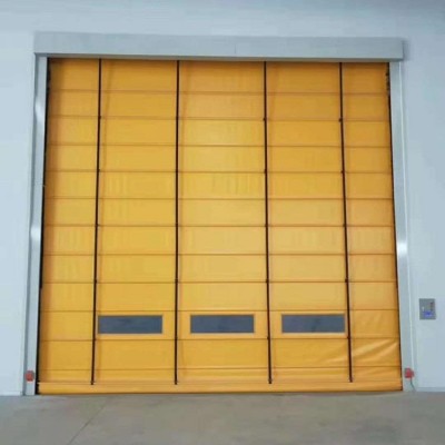 蝸輪減速,并設(shè)有手動離合器,停電時可手動啟閉。卷簾門為伸縮棚格型,具有啟閉平穩(wěn)、門體,開啟后占