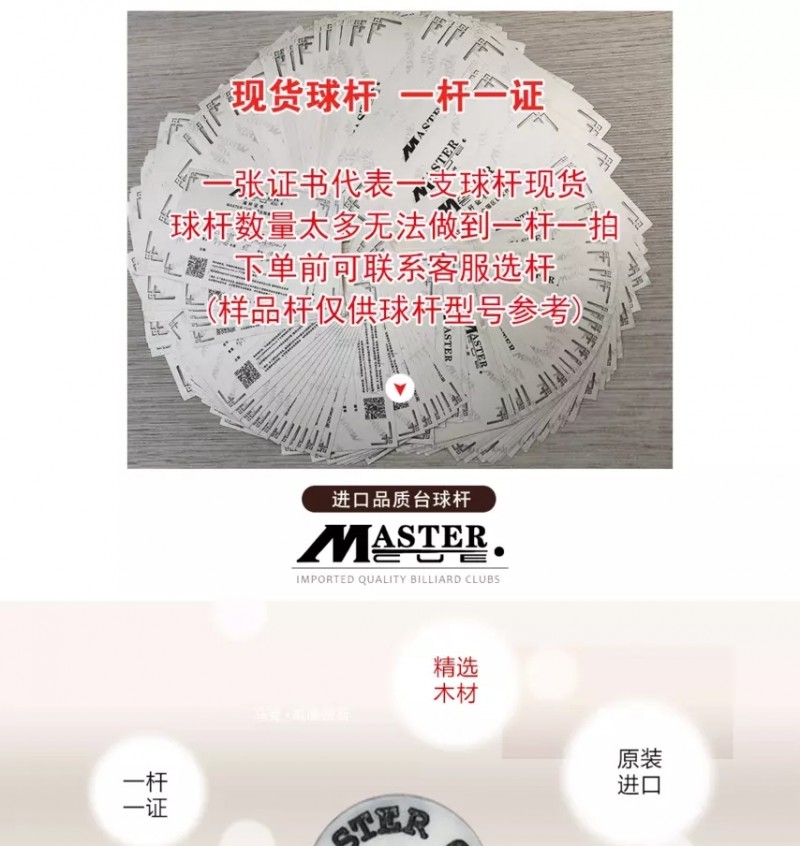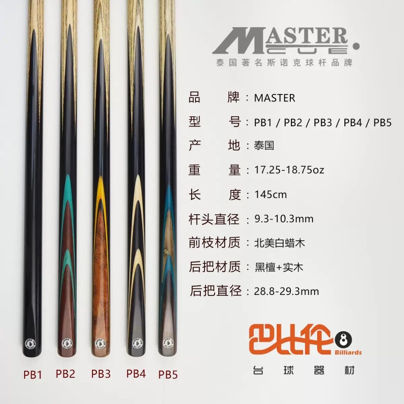相關(guān)介紹:master是泰國一線小頭桿品牌,在中國擁有大批量的愛好者,20多年以來,master不僅得到廣大愛提前好者的使用,還有多位職業(yè)球員也曾長期使用,master臺球桿在歐洲,亞洲具有極高的知名度。球桿木材分為5個等級,木材均是優(yōu)選材料,后把多種插花,簡潔精美,球桿傳力通透,韌性與硬度把控非常好。
