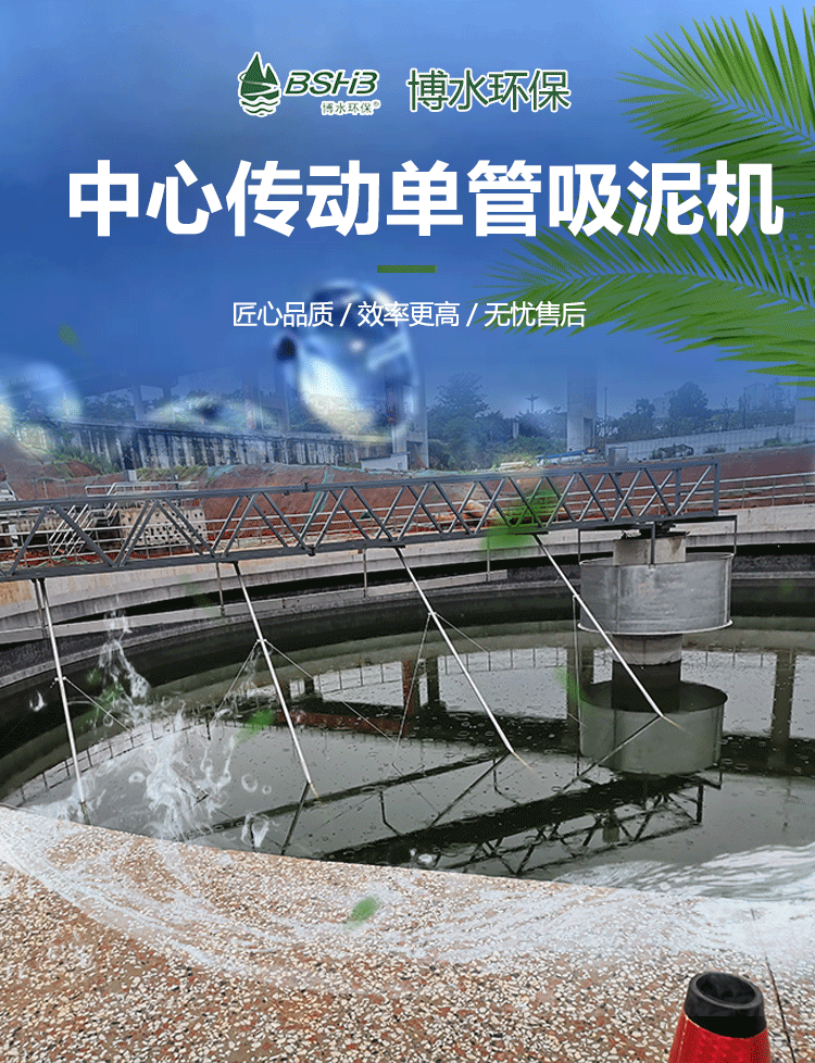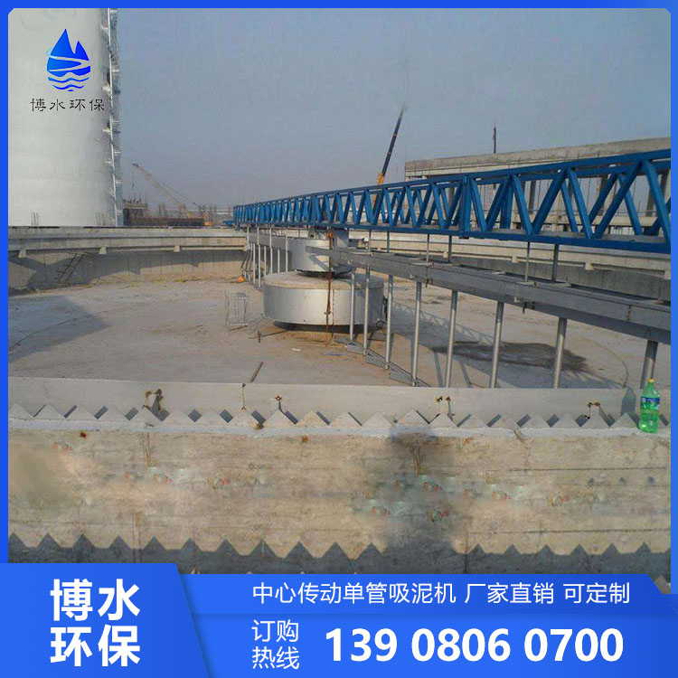 中心傳動單管吸泥機(jī)用于城市污水處理廠和工業(yè)廢水處理中直徑較大的圓形沉淀池特別是二沉池中,排除沉降在池底的污泥和撇除池面的浮渣。該系列吸泥機(jī)既適用于周邊出水的二沉池,也適用于中心進(jìn)水周邊出水的二沉池。