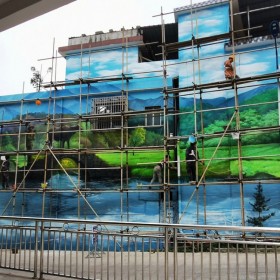 1:大型公共場所宣傳畫及裝飾性壁畫:幼兒園墻繪,社區(qū)宣傳畫墻繪,廠房墻繪,立柱彩繪,天橋彩繪 風景區(qū)壁畫等