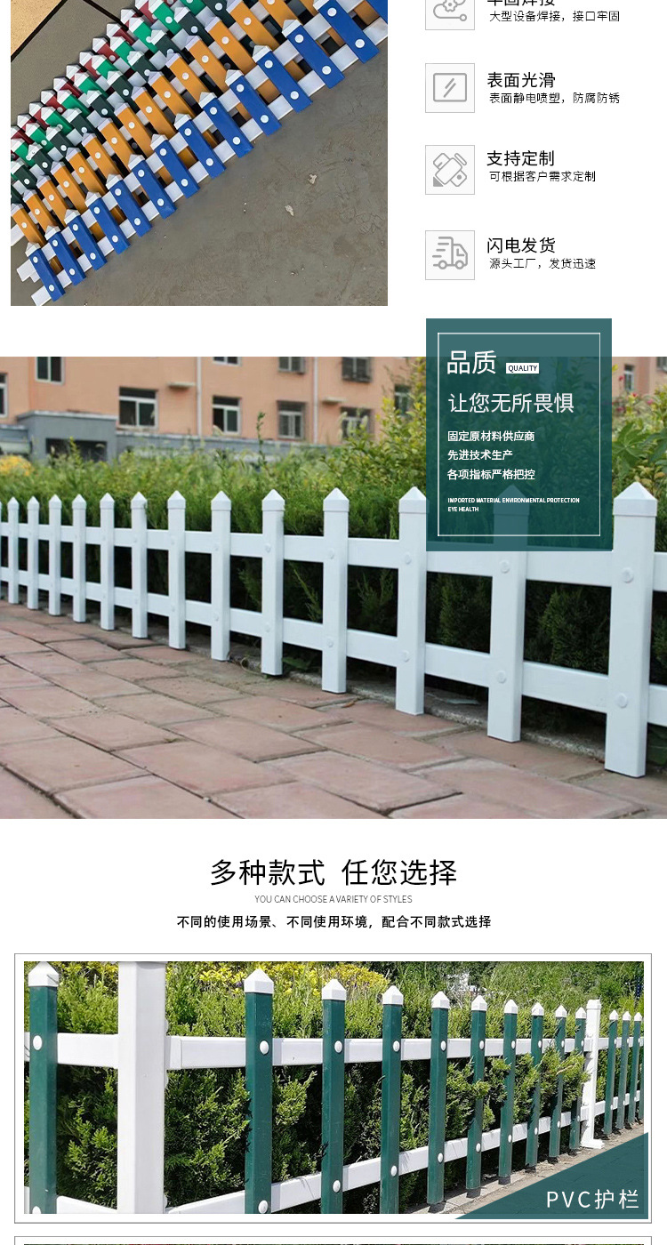 產(chǎn)品參數(shù) 產(chǎn)品名稱:四川廠家pvc塑鋼柵欄公園草坪護(hù)欄小區(qū)白色草坪花園綠化帶圍欄防護(hù)欄
