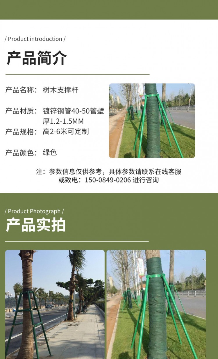 產(chǎn)品參數(shù) 產(chǎn)品名稱:四川廠家樹(shù)木支撐架鋼管固定器綠色大樹(shù)支撐桿喬木防風(fēng)抱箍園林金屬樹(shù)支撐