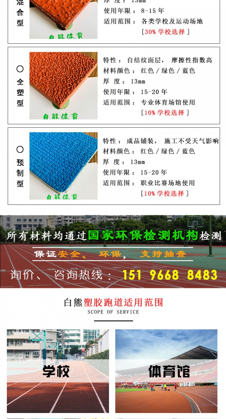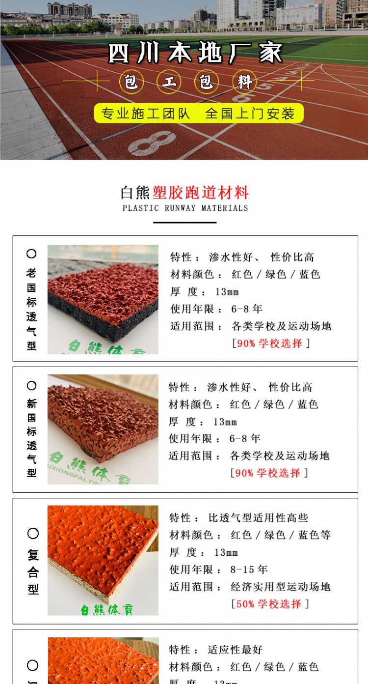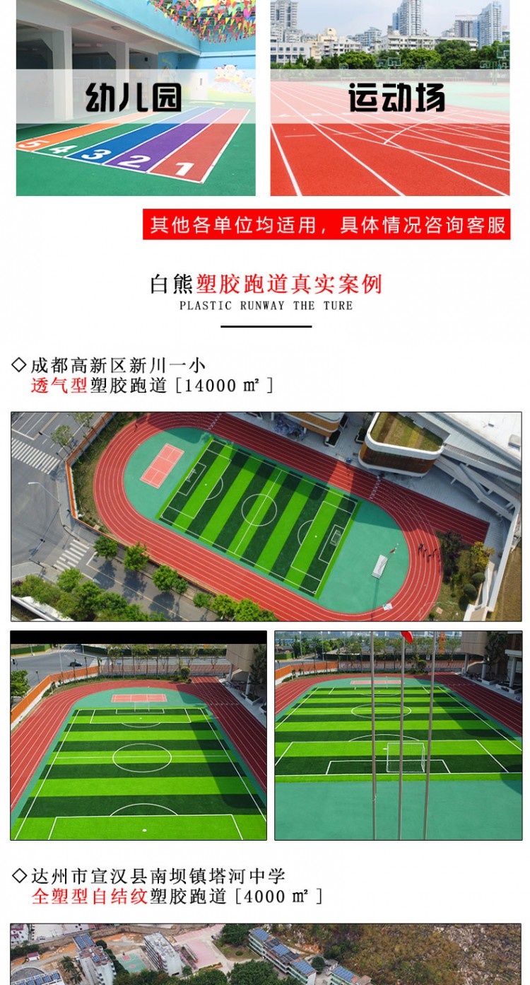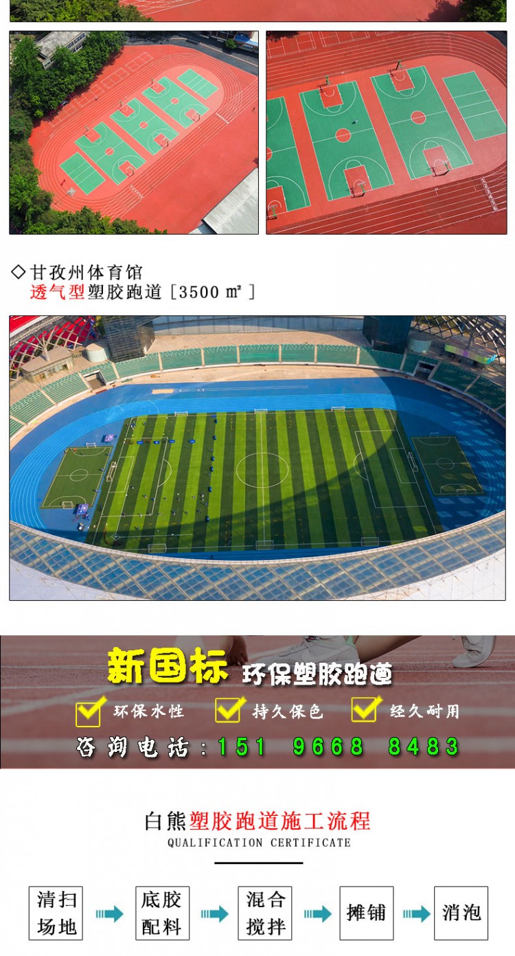 13mm學(xué)校運動體育場塑膠跑道地面材料 環(huán)保型透氣型跑道制作廠家