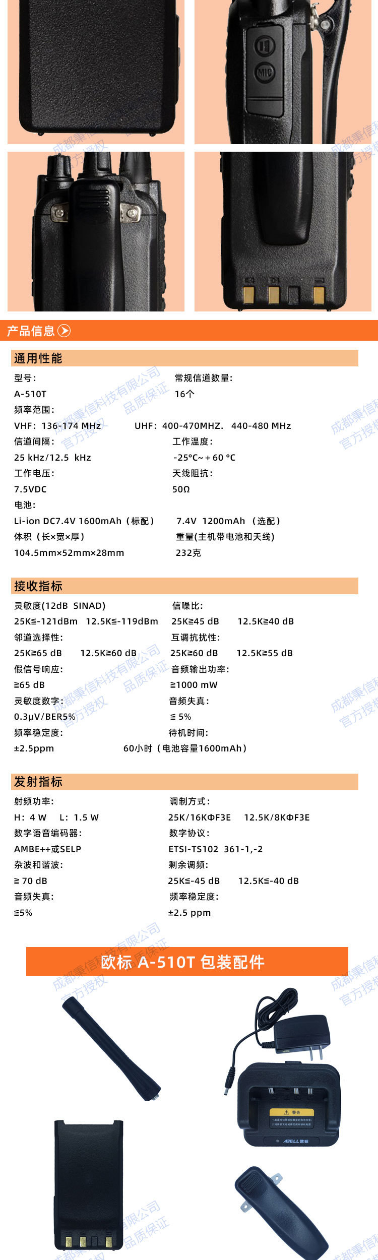 歐標(biāo)A-510T 專業(yè)數(shù)字對講機(jī) 防水對講機(jī) 防摔 大功率對講機(jī) 數(shù)模