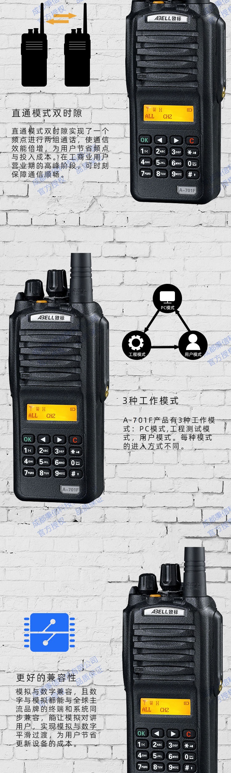歐標(biāo)ABELL手持A-701F 對(duì)講機(jī) 數(shù)字模擬可調(diào) 大功率手臺(tái)