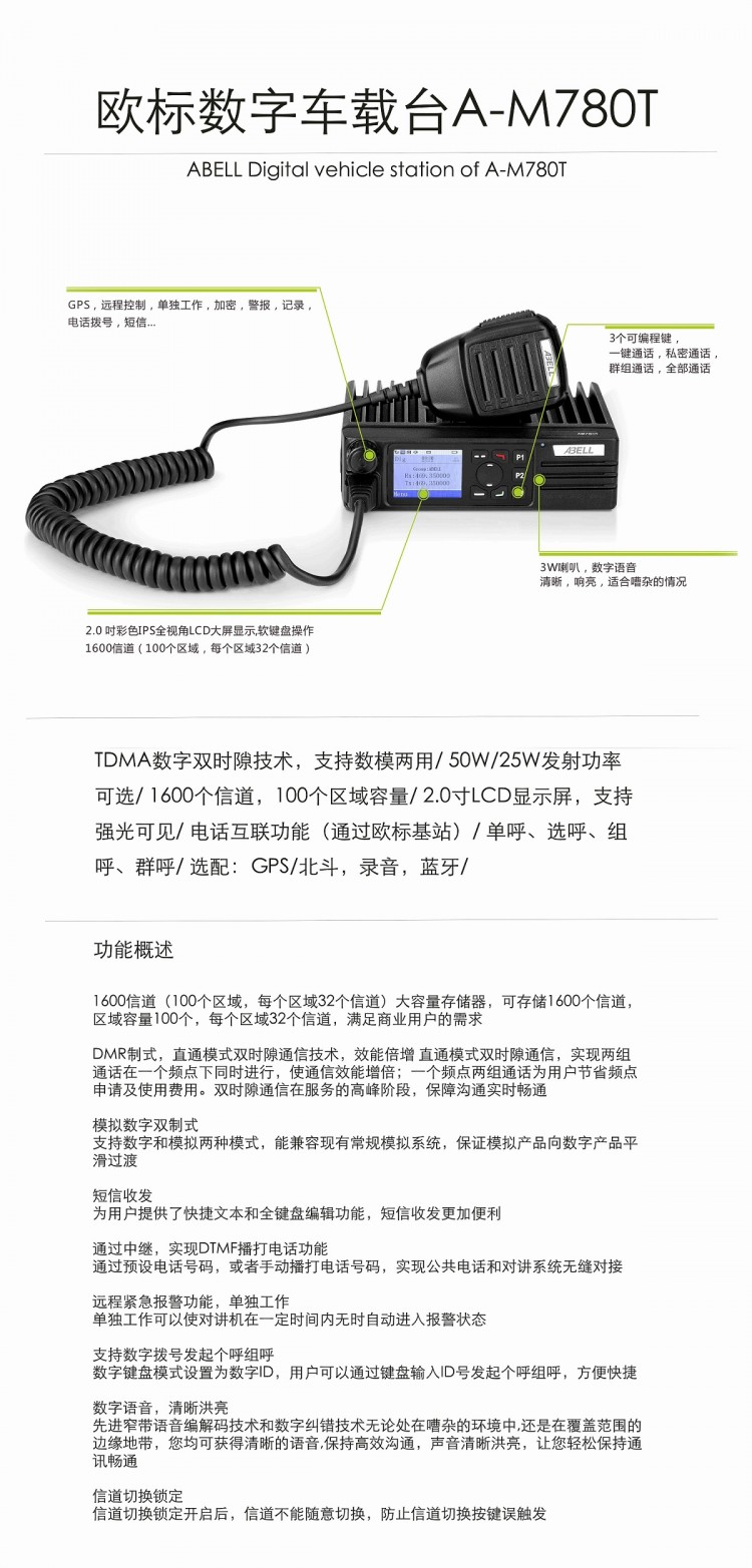 歐標(biāo)(ABELL)A-M780T數(shù)字車載臺 TDMA數(shù)字雙時隙 50W/25W可選