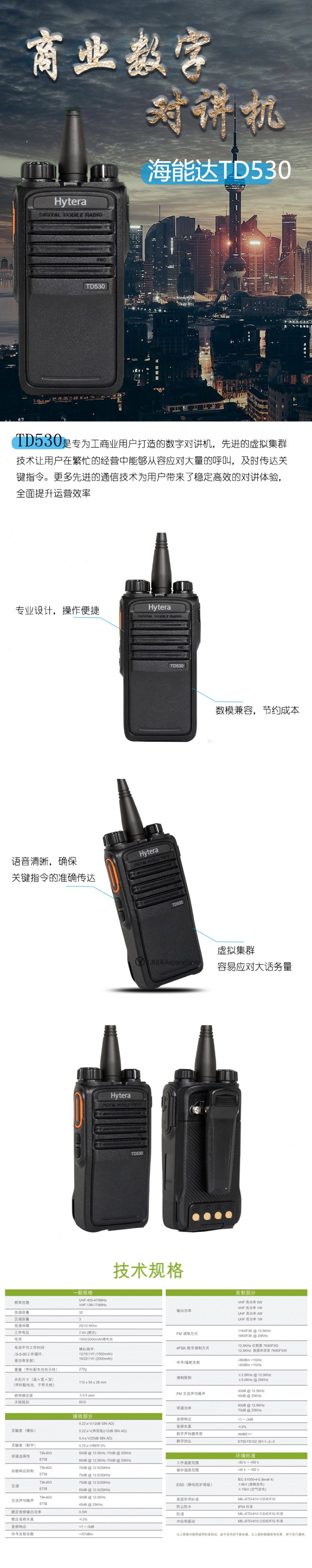 海能達(Hytera)TD530對講機商業(yè)數(shù)字手持機 大功率專業(yè)無線手臺