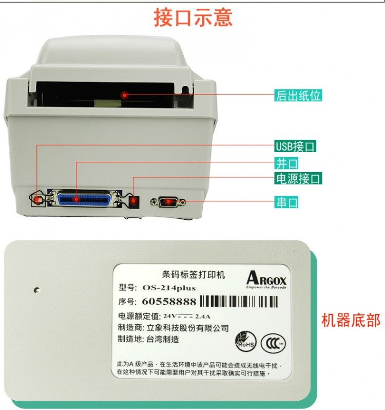 立象OS214plus標(biāo)簽條碼商超醫(yī)院干洗店不干膠打印機(jī)熱敏熱轉(zhuǎn)印