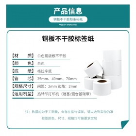 銅版不干膠32*25*4500張 T3225銅板不干膠條碼打印紙物流標(biāo)簽貼紙