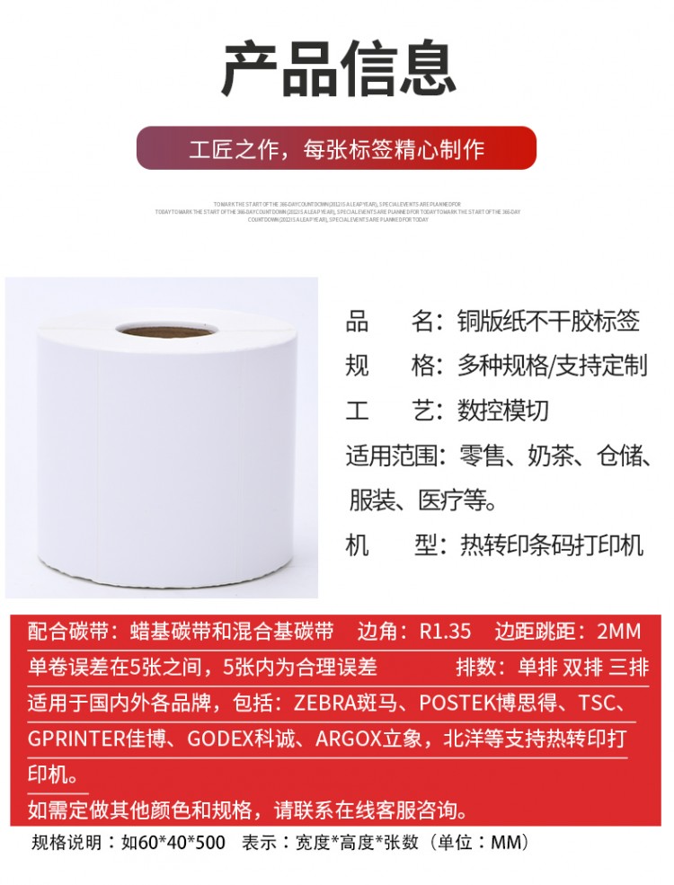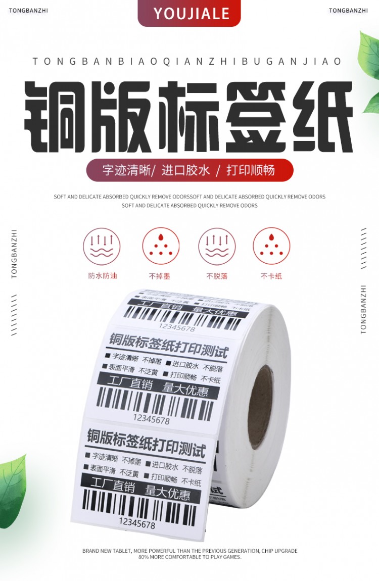 銅版不干膠100*80*500張 T1080銅板不干膠條碼打印紙物流標簽貼紙