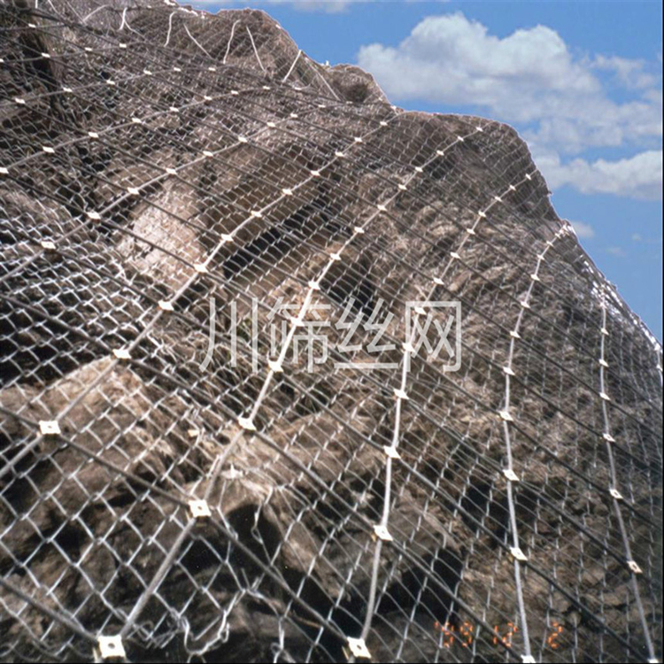 采用鋼絲繩錨桿或鋼筋錨桿和支撐繩固定方法將金屬柔性網罩蓋在具有潛在地質災害的坡面上,從而實現破面加固或限制落石運動范圍的一種防護網。