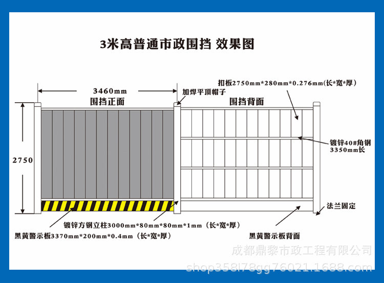 圍擋規(guī)格:2000mm*3000mm,下留500mm空間,砌磚或掛警示導(dǎo)流板。