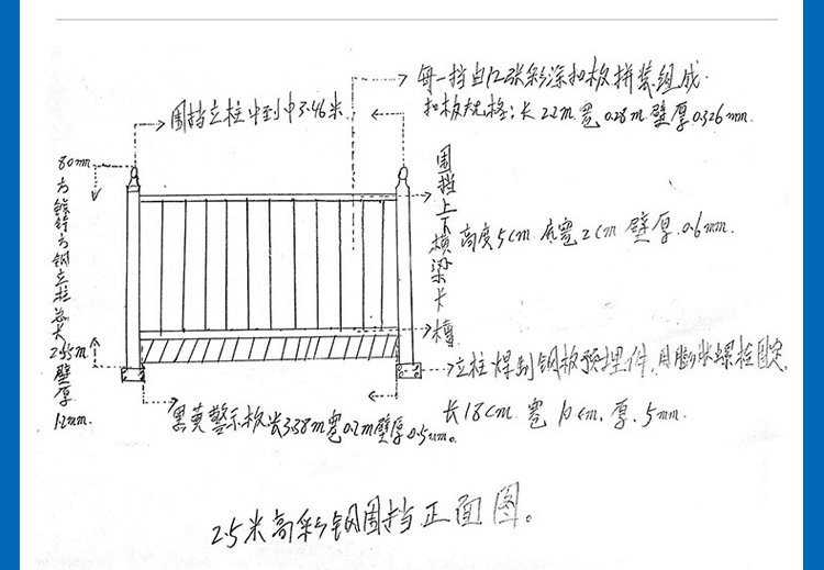 上下橫管:80*50mm PVC管,下橫管內(nèi)襯為:40*40*0.8鋼管。