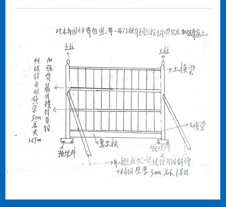 立柱與地面打膨脹螺絲后,下方砌磚或加斜撐掛警示導(dǎo)流鋼板固定。