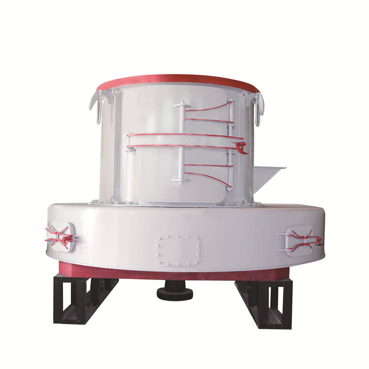 歐式磨粉機主機工作過程是通過錐齒輪整體傳動裝置帶動中心軸轉(zhuǎn)動,軸的上端聯(lián)結著磨輥吊架,架上裝有磨輥裝置并形成擺動支點。大塊狀物料經(jīng)顎式破碎機破碎到所需粒度后,由提升機將物料送至儲料斗,由提升機將物料送至儲料斗量連續(xù)地送入主機磨室內(nèi)進行研磨,粉磨后的粉子隨風機氣流上升,經(jīng)選粉機進行分級,符合細度的粉子隨氣流經(jīng)管道進入大旋風收集器內(nèi),進行分離收集,經(jīng)出粉閥排出即為成品粉子,氣流由大旋風集粉器上端回風管吸入離心引風機,本機整個氣流系統(tǒng)是密閉循環(huán)的,并且是在正負壓狀態(tài)下循環(huán)流動的.