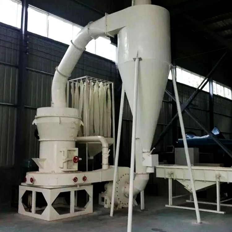 物料研磨后,風(fēng)機(jī)將風(fēng)吹入主機(jī)殼內(nèi),吹起粉末,經(jīng)置于研磨室上方的分析器進(jìn)行分選,細(xì)度過(guò)粗的物料又落入研磨室重磨,細(xì)度合乎規(guī)格的隨風(fēng)流進(jìn)入旋風(fēng)收集器,收集后經(jīng)出粉口排出,即為成品。風(fēng)流由大旋風(fēng)收集器上端的回風(fēng)管回入風(fēng)機(jī),風(fēng)路是循環(huán)的,并且在負(fù)壓狀態(tài)下流動(dòng),循環(huán)風(fēng)路的風(fēng)量增加部分經(jīng)風(fēng)機(jī)與主機(jī)中間的廢氣管道排出,進(jìn)入小旋風(fēng)收集器,進(jìn)行凈化處理。