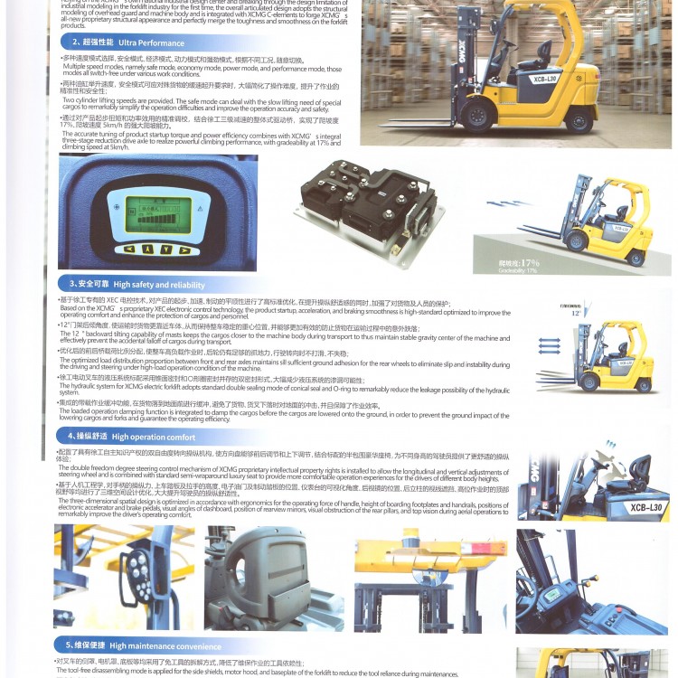 徐工電動(dòng)叉車C系列 XCB-L18/20/25/30,四輪平衡重 詳細(xì)信息 1.依托徐工自有的工業(yè)設(shè)計(jì)中心,將護(hù)頂架和車體進(jìn)行整體結(jié)構(gòu)的銜接式設(shè)計(jì),融入徐工C元素,將硬朗和流暢在叉車產(chǎn)品上完美融合為一體.