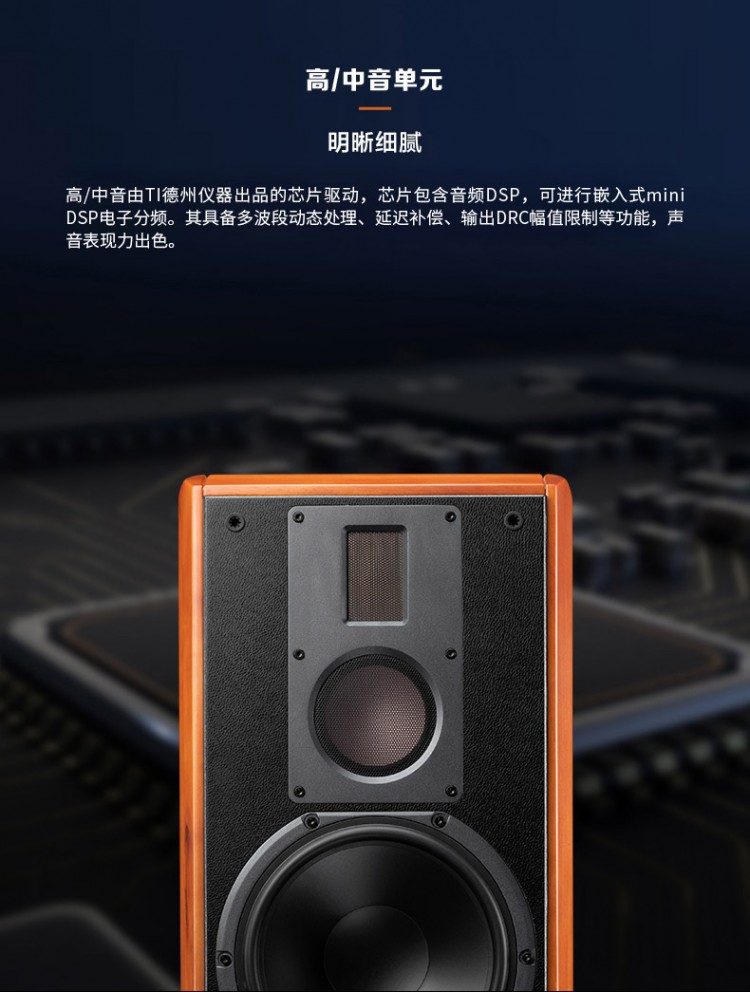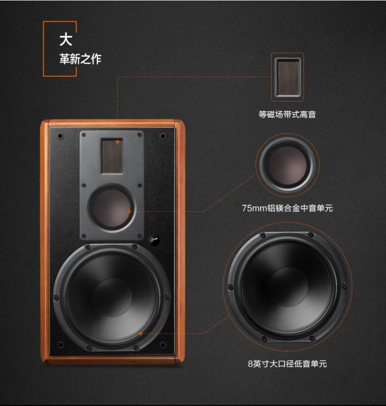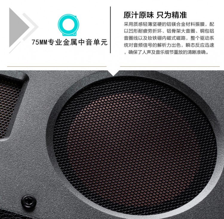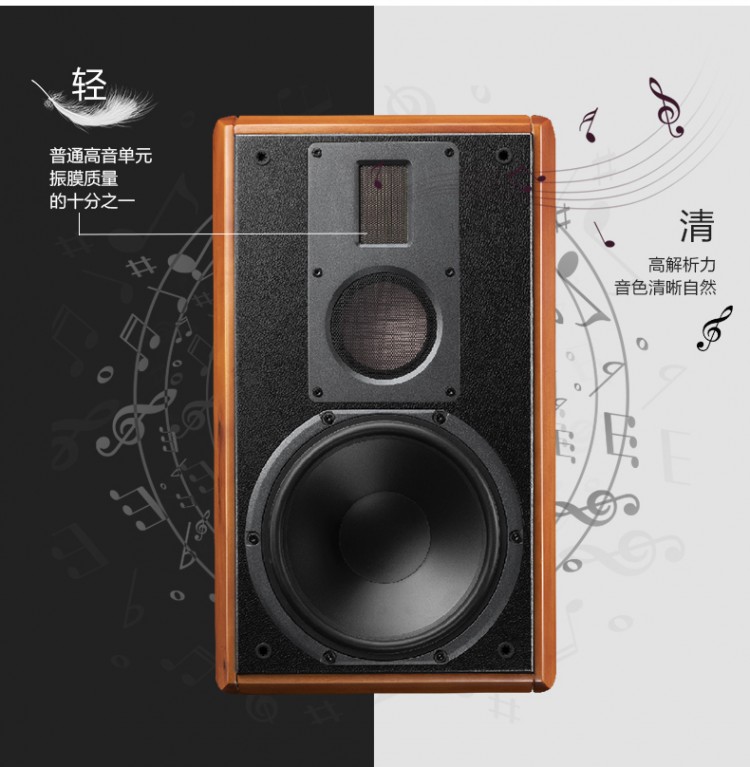 單元配置 專業(yè)8英寸低音、專業(yè)75mm中音、等磁場(chǎng)帶式高音 頻率范圍 35Hz-40KHz(±2.5dB,free space)