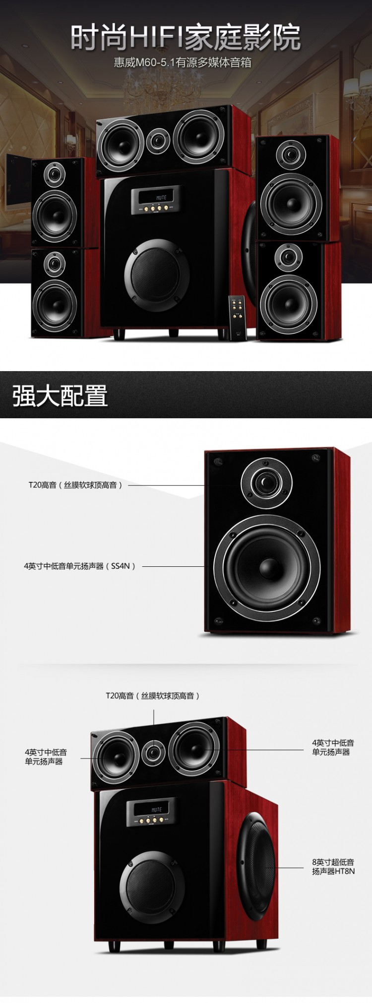 綿陽惠威音響 木紋箱體M60家用音響 家庭影院音響系統(tǒng) 書房電腦客廳電視音響