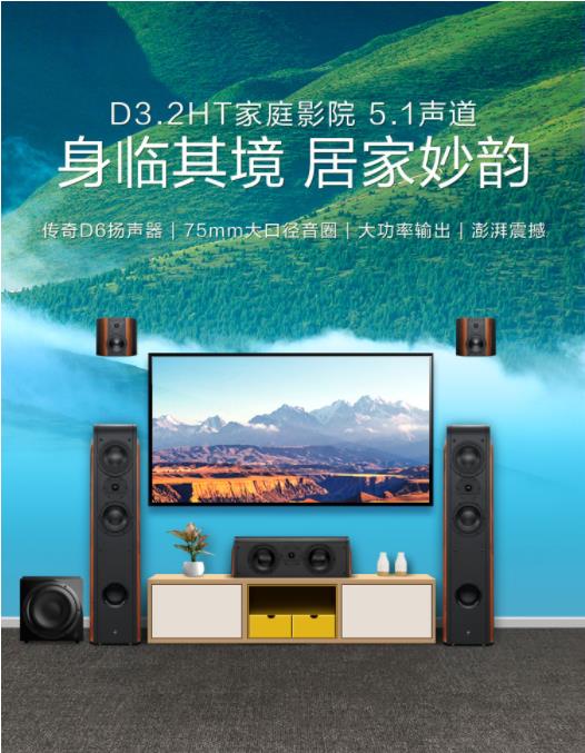 首頁 >成都匯昌科技有限公司>惠威音響 家用音響組合系統(tǒng)套裝 家庭影院音箱5.1系統(tǒng) D3.2HT+Sub10G音響設備組合