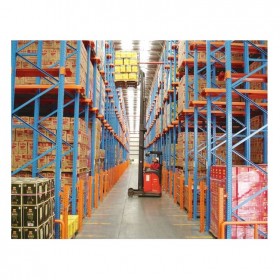 2.貨物存取從貨架同一側(cè)進(jìn)出,先存后取、后存先取,平衡重及前移式叉車可方便地駛?cè)胴浖苤虚g存取貨物,無需占用多條通道。
