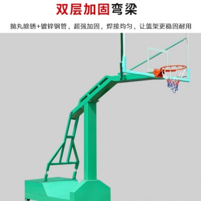 詳細(xì)信息 籃球架是籃球場地的必需設(shè)備。安置于場地兩端。1、籃板尺寸:尺寸:1.8*1.05米為國際標(biāo)準(zhǔn)鋼化玻璃材料制成,完全勝任灌籃和其他激烈的運動。2、主桿:優(yōu)質(zhì)方形鋼管直徑為140mm(國際標(biāo)準(zhǔn)移動炮式籃球架的主桿直徑為75mm)3、移動底盒:優(yōu)質(zhì)鋼板制成,尺寸為:20(高)*100(寬)*180(長),移動底盒里裝負(fù)重物,以保證在使用時的穩(wěn)定性。