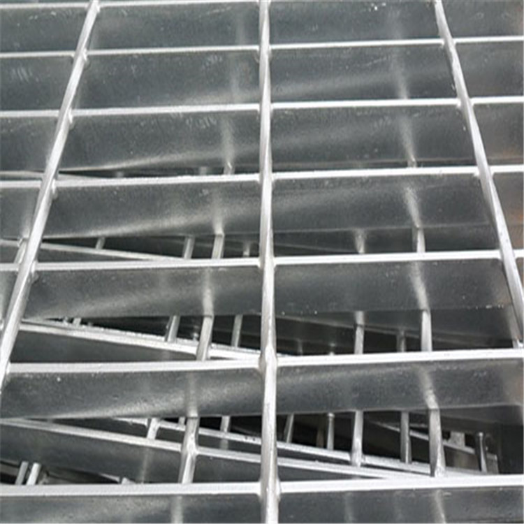 熱鍍鋅鋼格板是由負載扁鋼和橫桿按一定間距經(jīng)緯排列,在高壓電阻焊機上焊接而成原板,經(jīng)切割、切口、開孔、包邊等工序深加工而成客戶要求的成品。