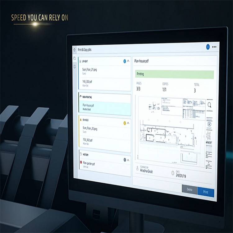 這類打印機(jī)是單個(gè)用戶或多個(gè)用戶環(huán)境的理想之選。它們能夠提供良好打印效果,其中包括黑白 CAD 圖紙和彩色演示文稿。此外,自動(dòng)卷筒校準(zhǔn)和打印預(yù)覽等工具則有助于簡(jiǎn)化工作流程,并確保工作效率。