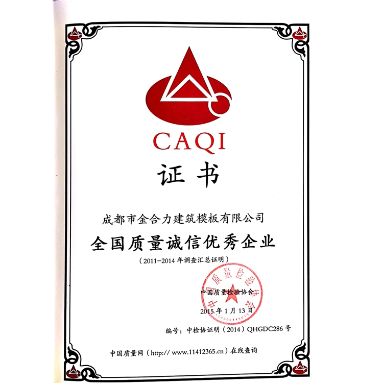 公司于2014年--2017年被評為“全國質量誠信企業(yè)”和“全國質量檢驗穩(wěn)定合格產(chǎn)品”,同時,也是成都市鋼模板行業(yè)的商標。