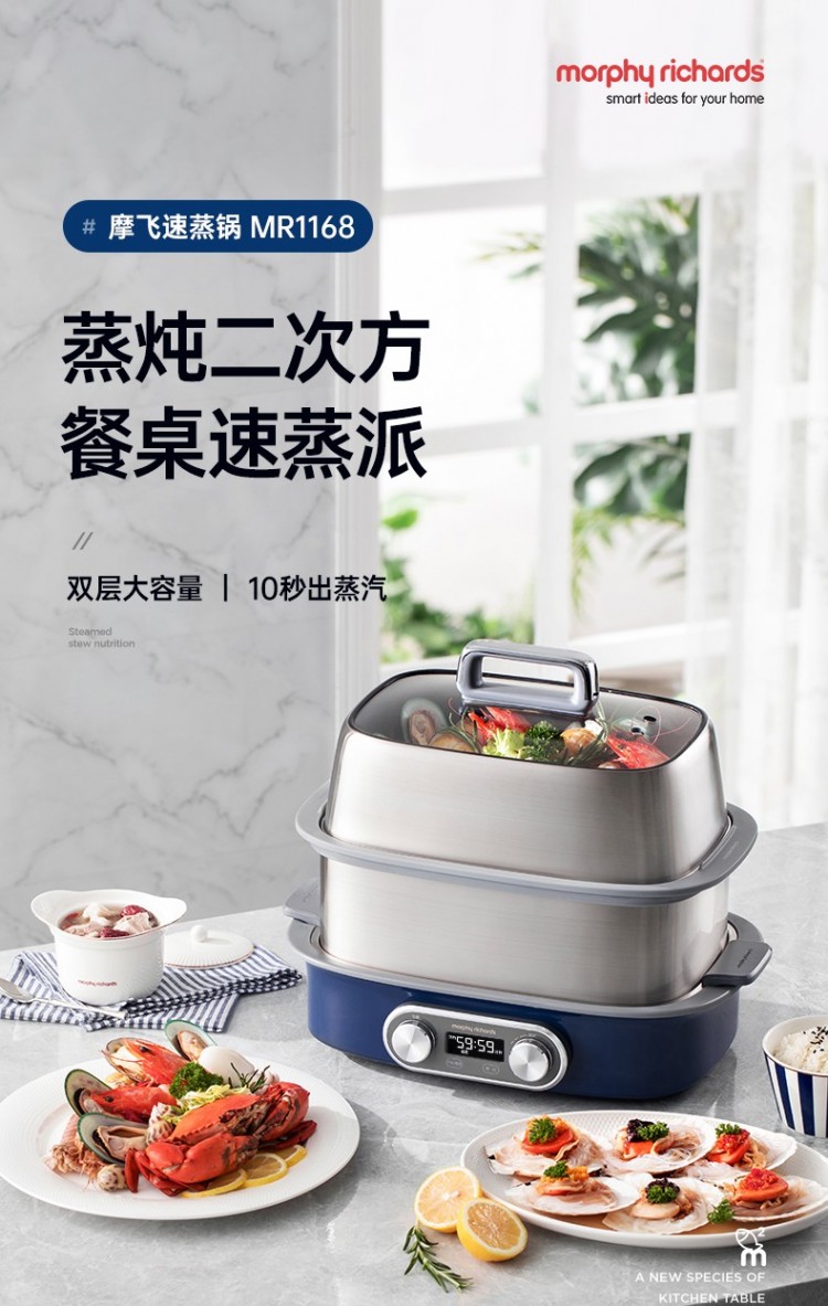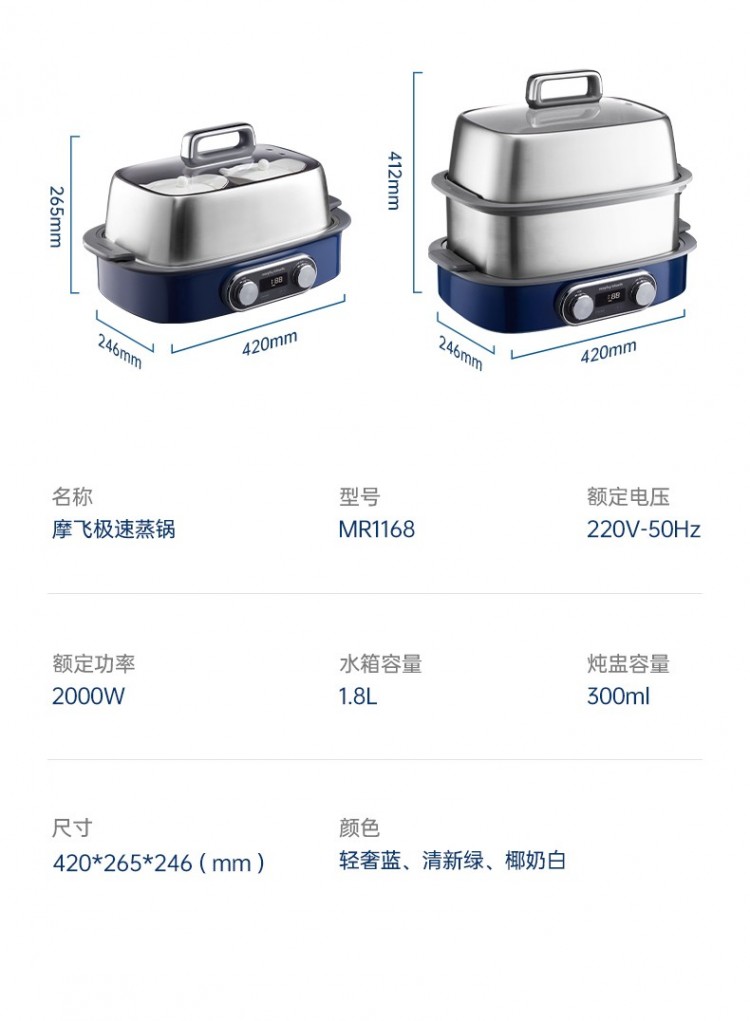 摩飛極速電蒸鍋 摩飛MR1168隔水蒸燉鍋 雙層家用多功能大容量蒸汽鍋 可預(yù)約定時 詳細(xì)信息 1.夠快才鮮。8秒蒸汽噴發(fā),味蕾領(lǐng)”鮮”一步。