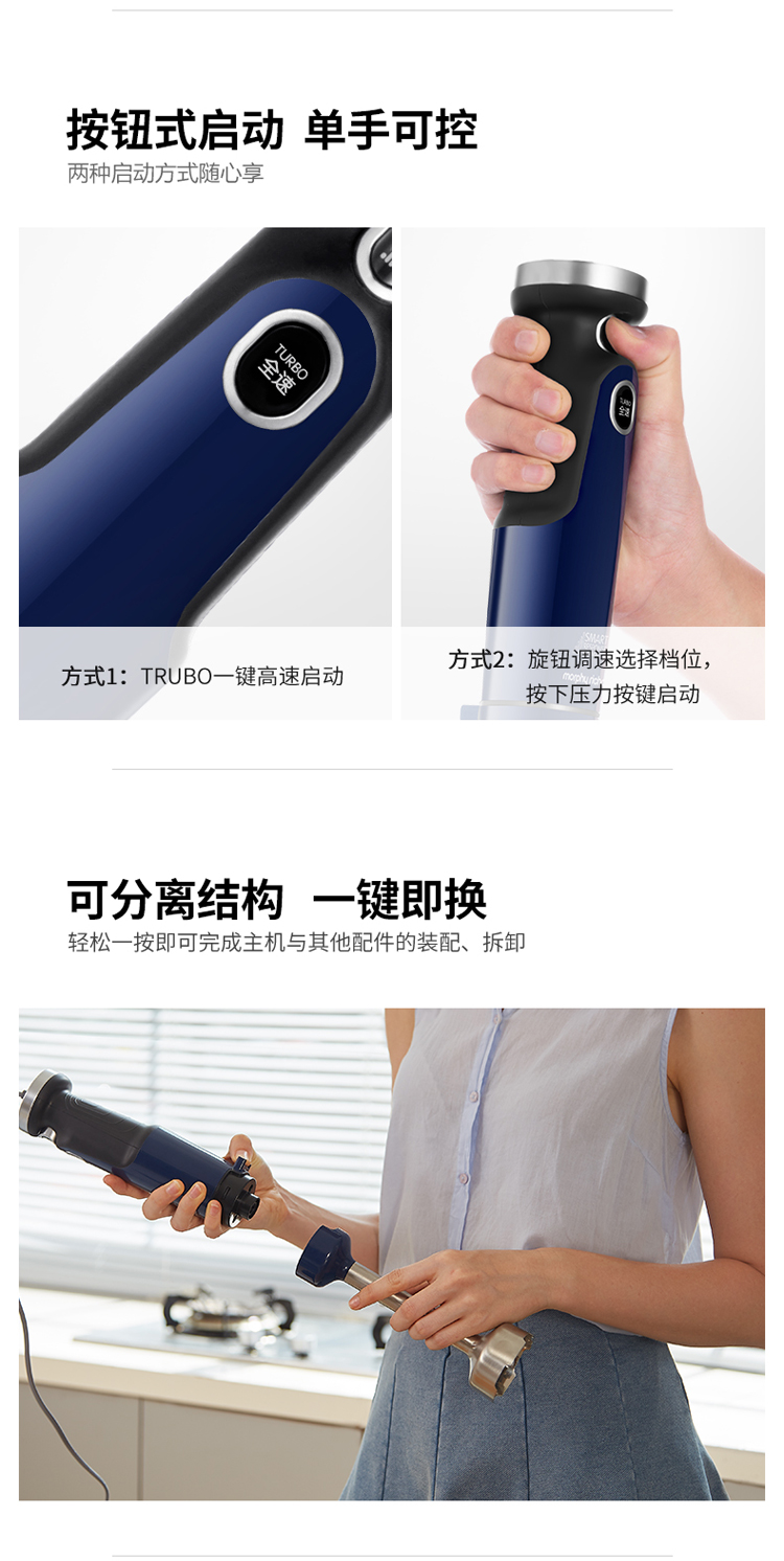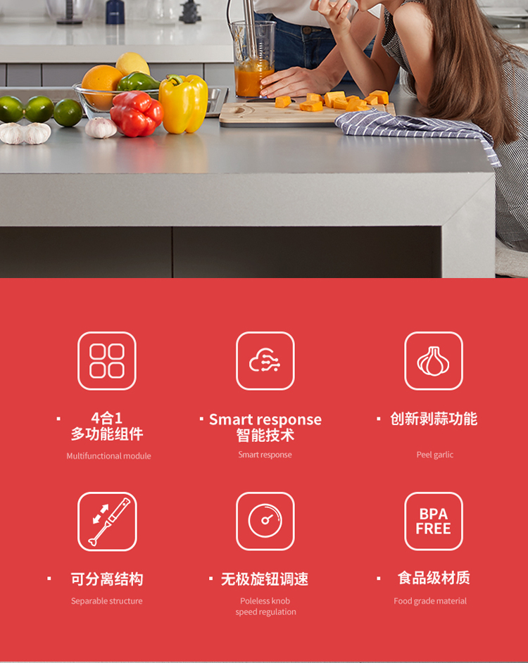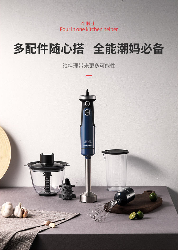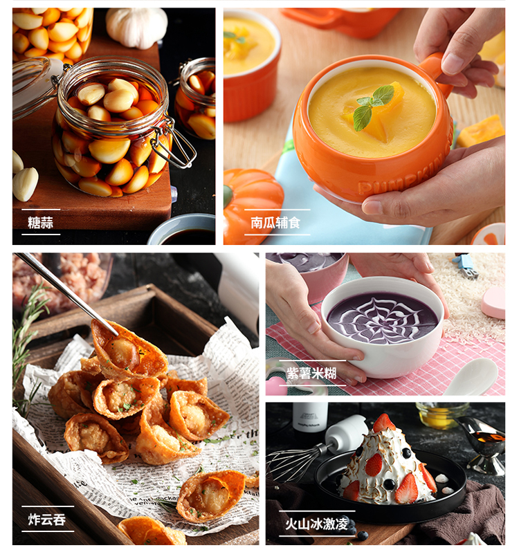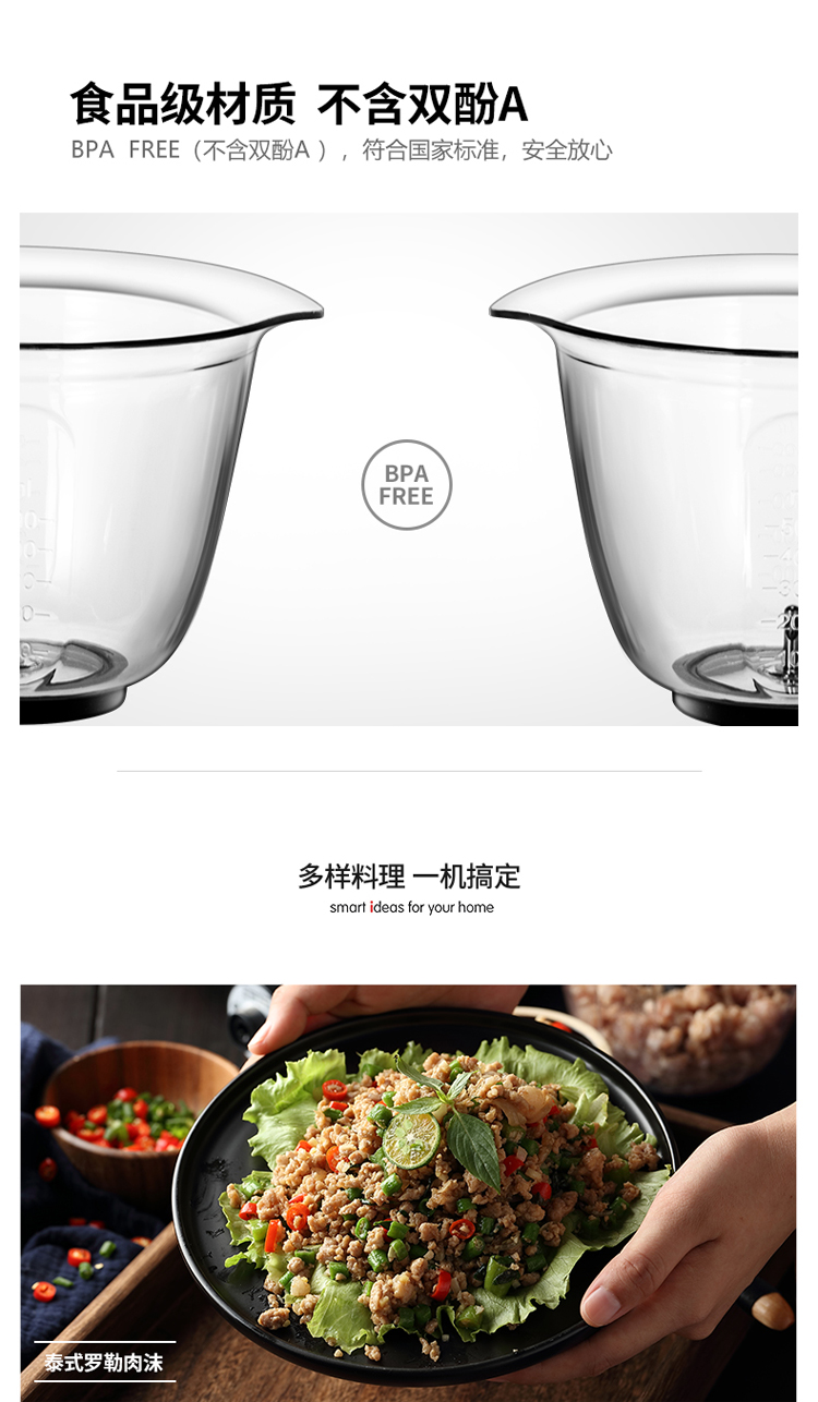 2.一機(jī)多能。4種配件擴(kuò)展,烹飪、輔食、烘焙…從容應(yīng)對料理需求,一鍵即換。