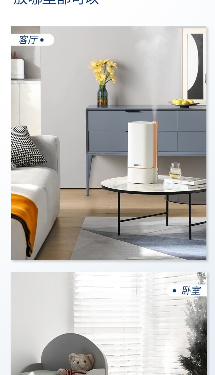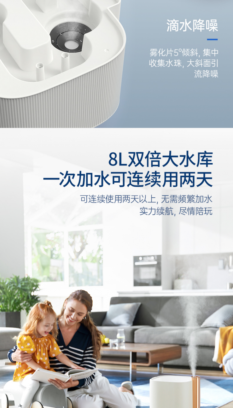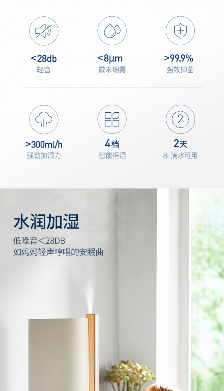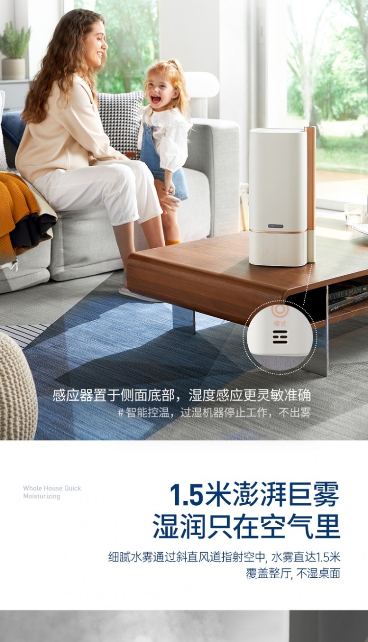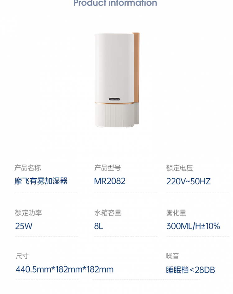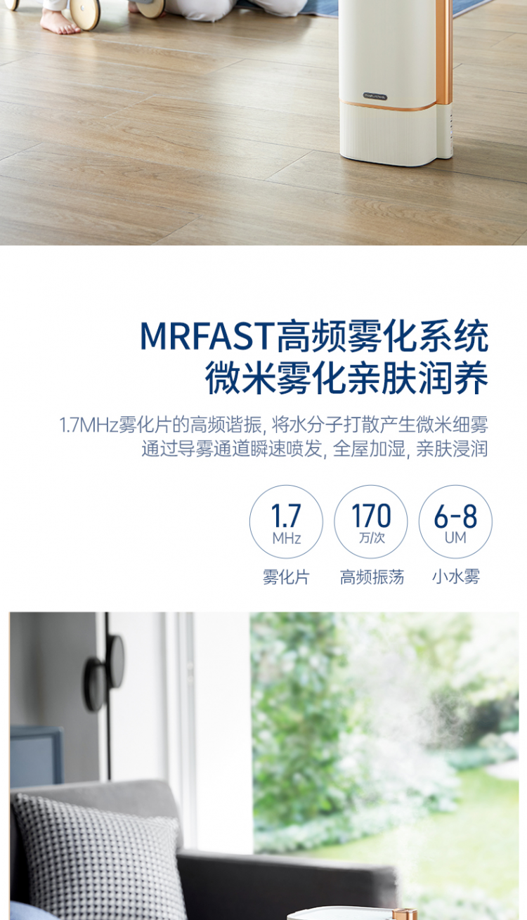 摩飛空氣加濕器 摩飛MR2082大容量8升有霧加濕器 臥室母嬰家用低噪落地式智能恒濕香薰機(jī)