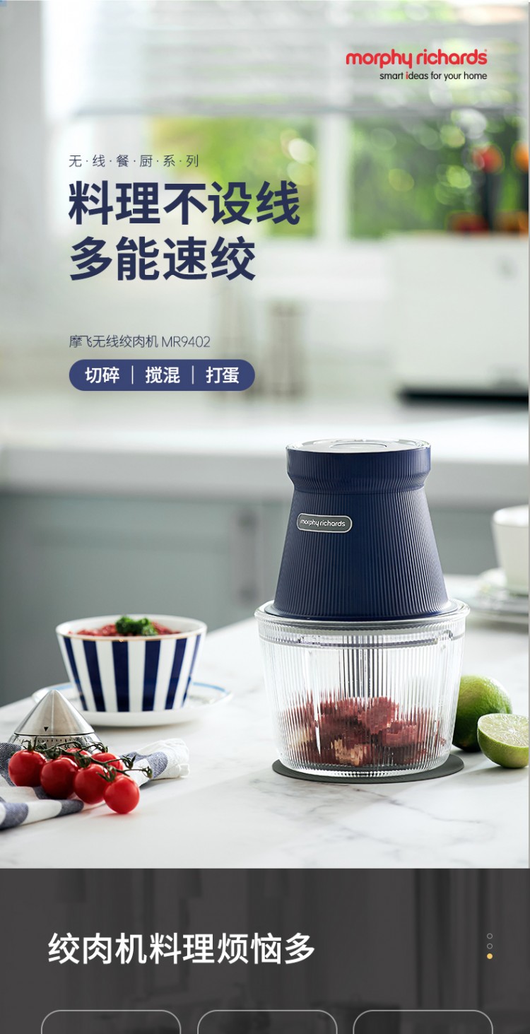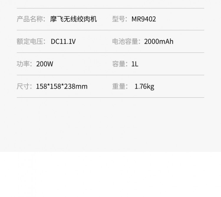 摩飛無線絞肉機(jī) 摩飛MR9402A家用小型料理機(jī) 多功能輔食絞菜碎肉攪拌機(jī)絞餡機(jī)器 詳細(xì)信息 1.無線便攜。擺脫電線束縛,料理不止步于廚房。