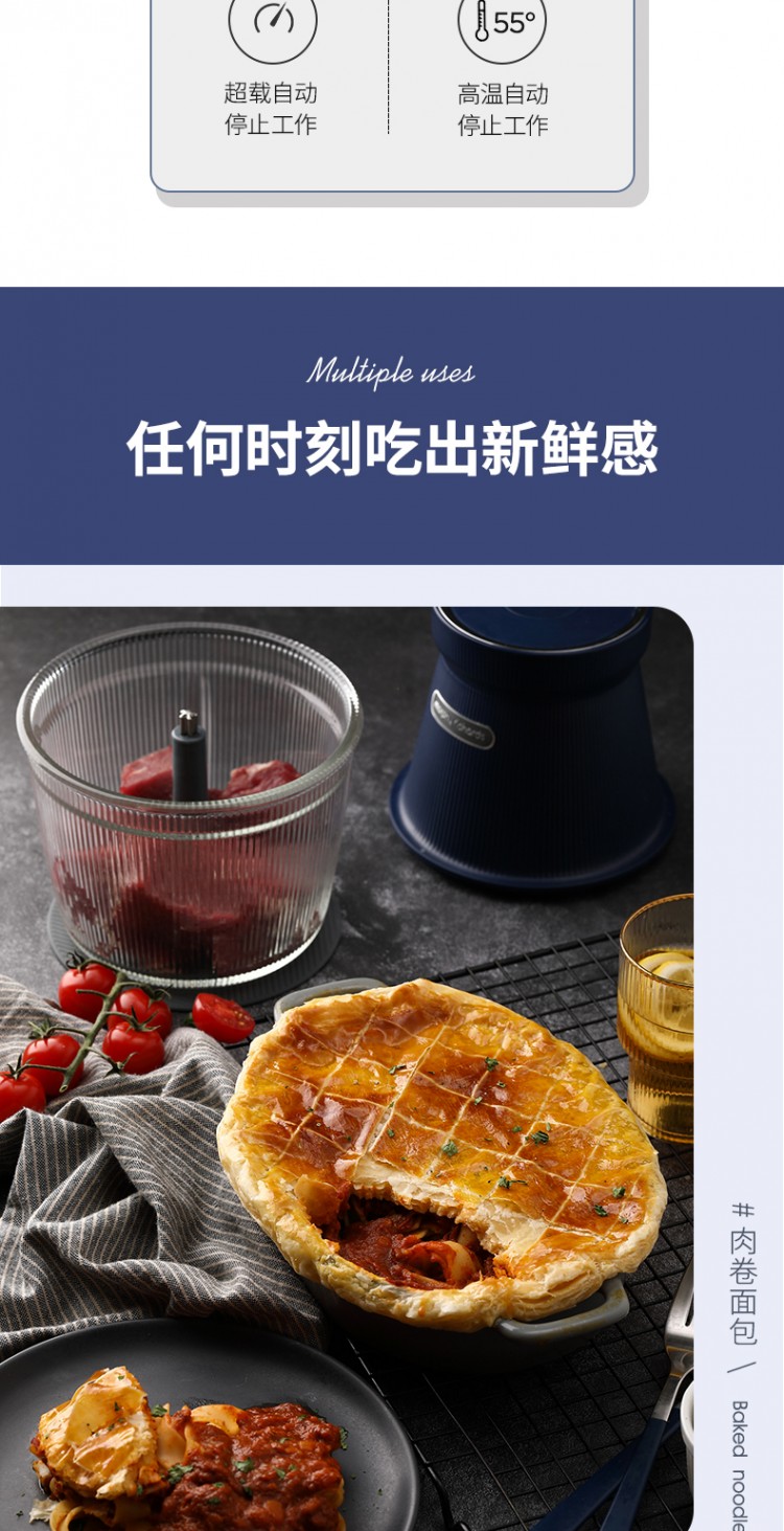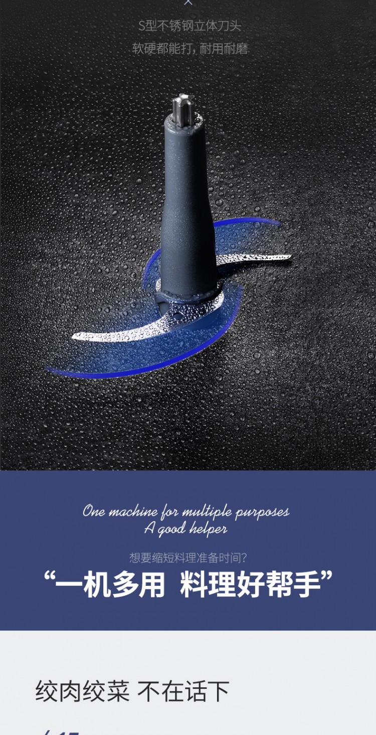 2.多能速絞。15秒絞肉、10秒醬料、10秒輔食、60秒打蛋,各種料理信手拈來。