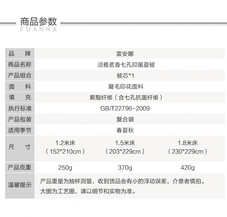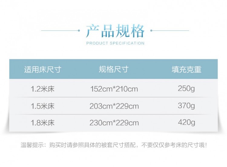 產(chǎn)品規(guī)格:203*229cm(370g) 230*229cm(420g)