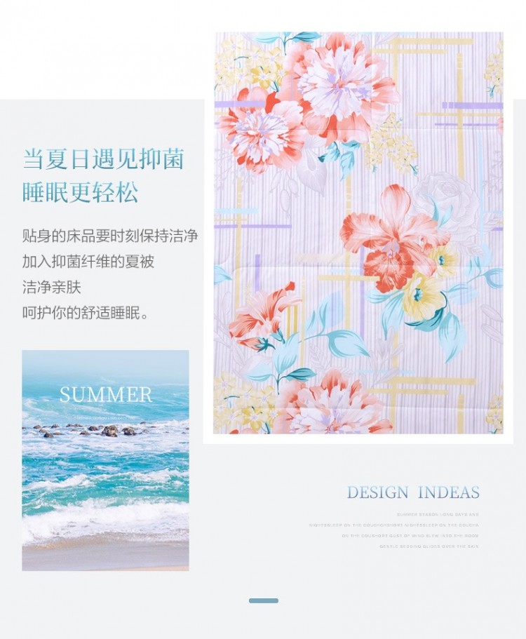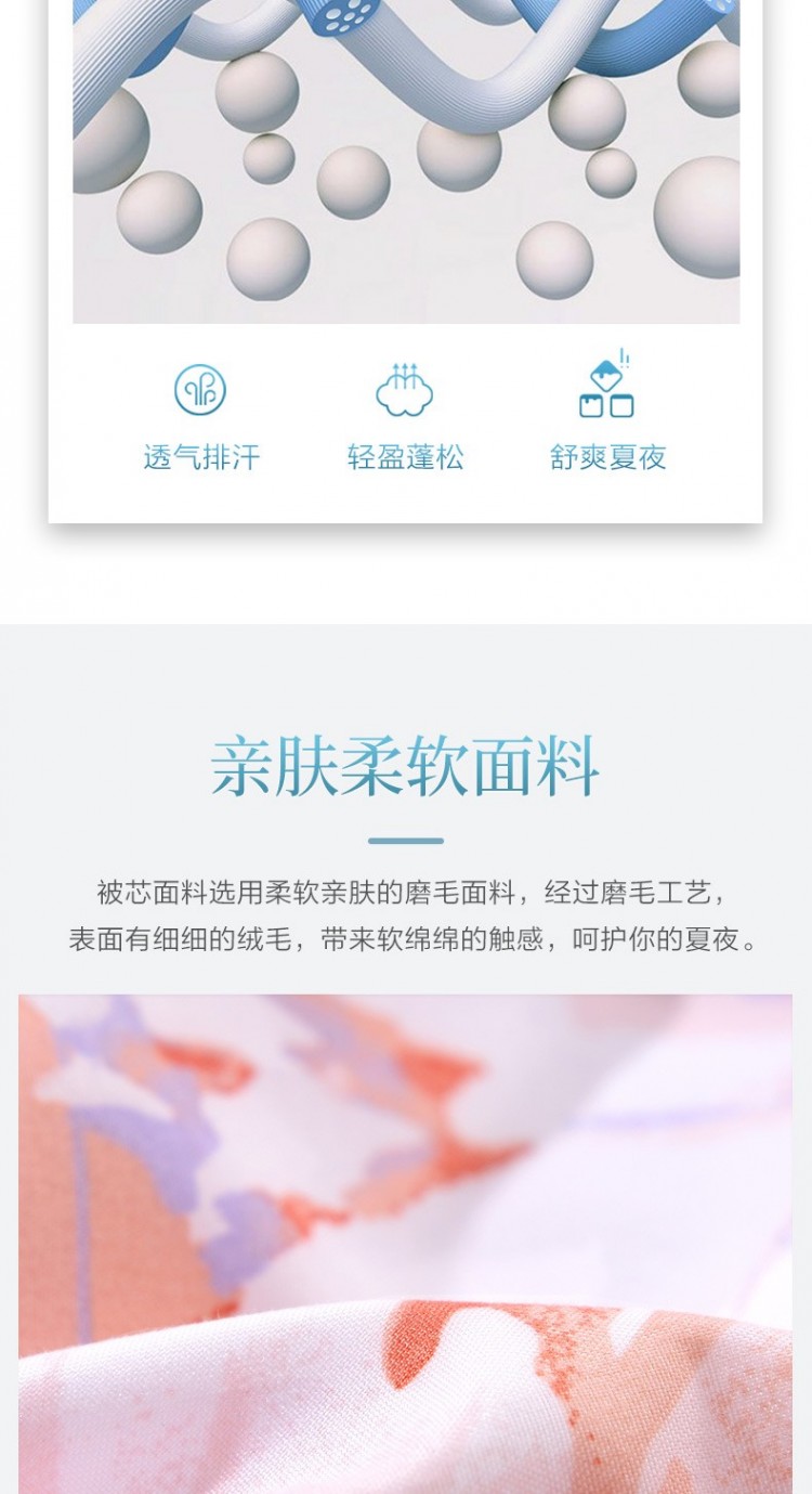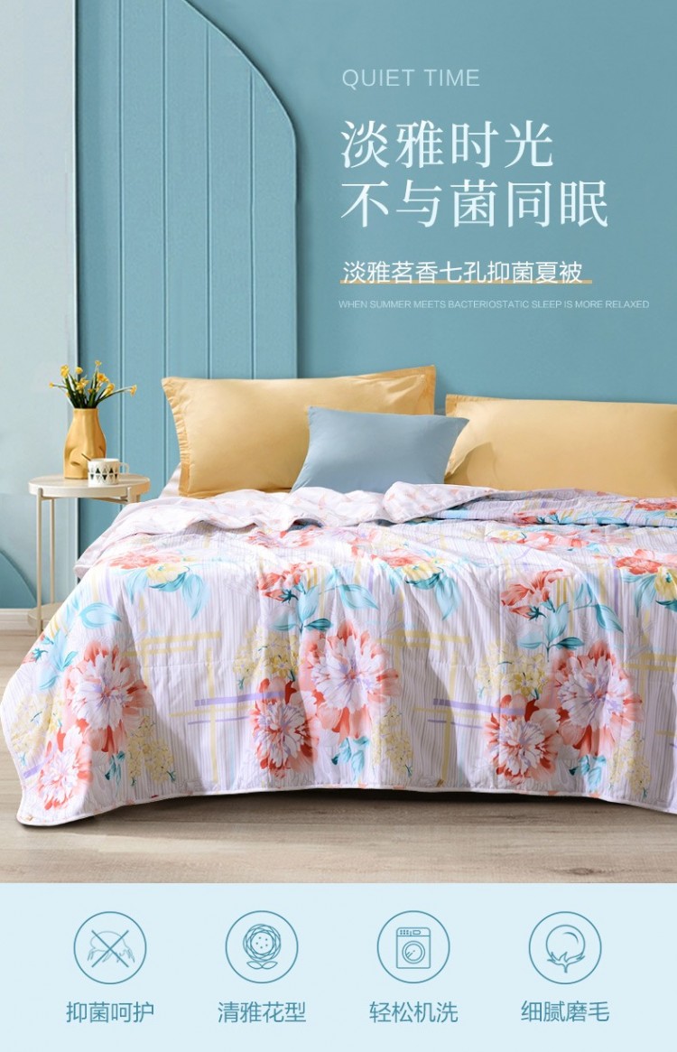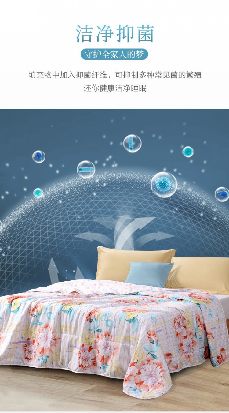 1.加入抑菌纖維的夏被潔凈親膚,呵護你的睡眠質(zhì)量。