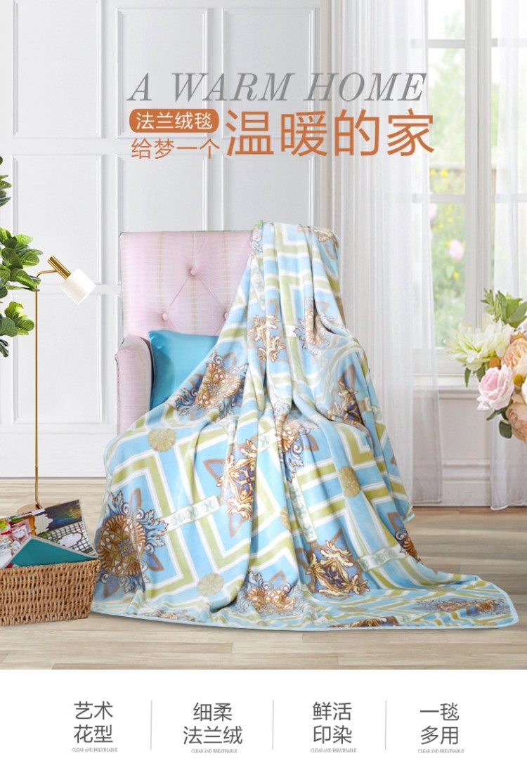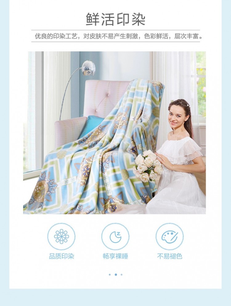 產(chǎn)品特點(diǎn):1、花型設(shè)計(jì)獨(dú)特,鮮活印染不退色,絨面細(xì)膩豐盈,柔軟舒適,透氣舒爽,產(chǎn)品經(jīng)縮絨、拉毛處理,絨面纖維緊密牢固,不易掉絨;2、一毯多用,可用做空調(diào)毯,旅行毯,休閑毯,保暖床單等等,四季相伴,貼心實(shí)惠,方便打理攜帶。