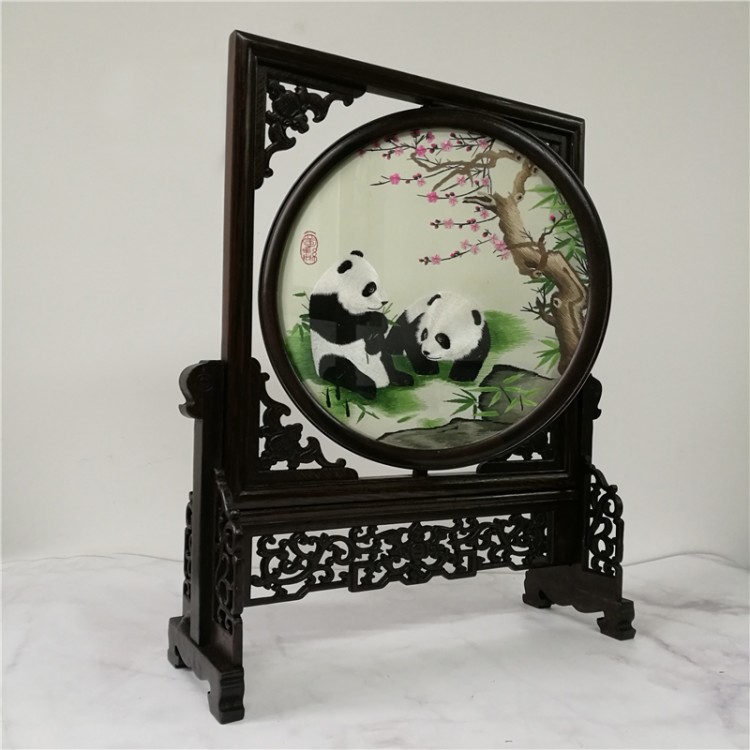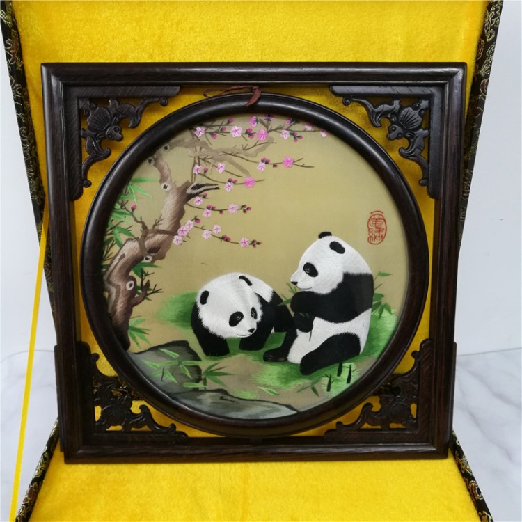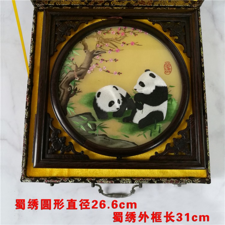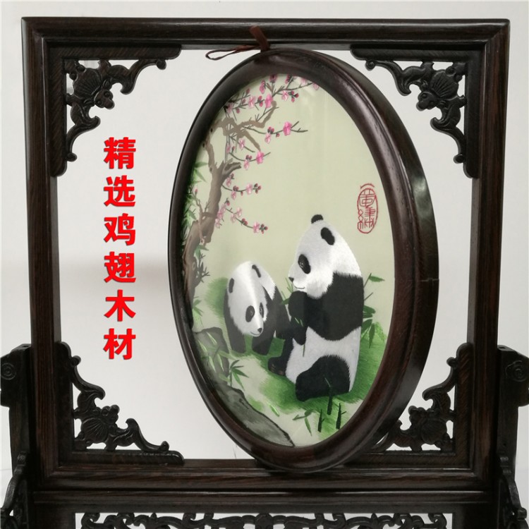 四川成都特色蜀繡廠家批發(fā) 四川特色禮品25圓雞翅木蜀繡