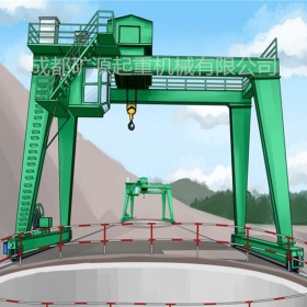 提梁機是一種為橋梁建設而專門設計的一種門式起重機。提梁機主要由拼裝式主梁、支腿、天車等組成,構件間采用銷軸及高強螺栓連接,易于拆裝、運輸;與普通門式起重機相比,安裝方便快捷,經濟實用。適用于經常流動的道路橋梁建設單位 提梁機既可兩臺配合抬吊預制梁,也可以單臺起重機配雙吊具起吊預制梁,兩臺同時起重的提梁機各自的起重量一般為450噸,單臺起重的提梁機起重量通??蛇_900噸。它配置支腿行走、天車行走及天車起吊設備,可以實現機械化動作。主要用于將預制梁從制梁臺提吊至存梁臺位,預制梁養(yǎng)護完成后將其從存梁臺位吊運到運梁車上。作為起重設備完成架橋機的組裝和拆卸。還用于架設墩身不高的旱橋。 1,提升機構和運行機構運行速度低,以提高預制梁對位精度和減少對提梁機結構的沖擊。 2,提梁機內部空間要足夠大,以滿足吊運預制梁和架橋機的拼裝。 3,主體鋼結構在滿足強度、剛度、穩(wěn)定性前提下,考慮拆裝運輸。 4,采用兩臺吊運預制梁時要滿足兩臺機子同步運行(提梁機出租,重慶提梁機廠家,大型龍門吊,四川生產提梁機廠家)
