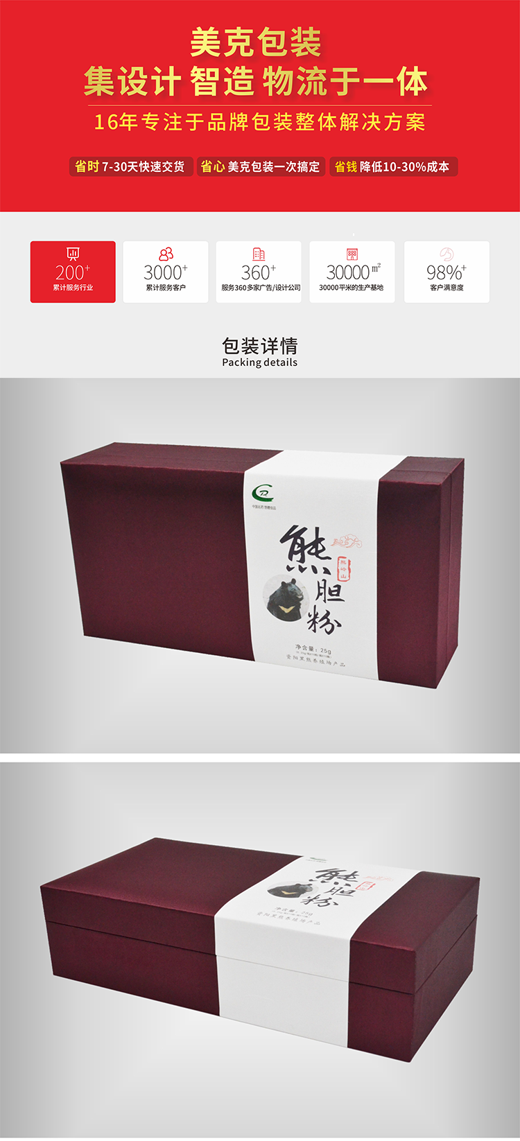 美克包裝 熊膽粉包裝 禮盒包裝 農(nóng)產(chǎn)品包裝 定制包裝