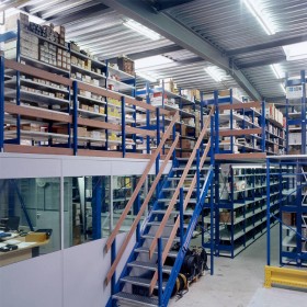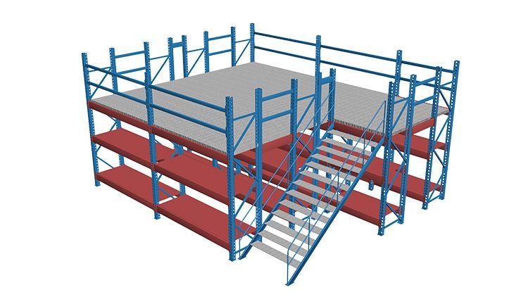 閣樓貨架系統(tǒng),通常利用中型擱板式貨架或重型擱板式貨架作為主體支撐加上樓面板(根據(jù)貨架單元的總負(fù)載重量來決定選用何種貨架),樓面板通常選用冷軋型鋼樓板、花紋鋼樓板或鋼格柵樓板。